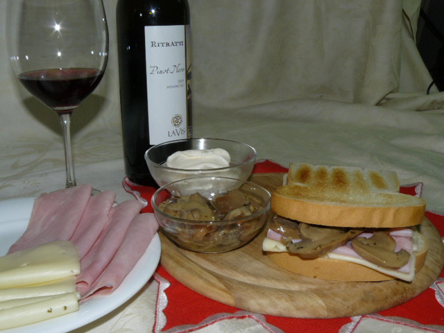 Prosciutto cotto, formaggio, maionese, funghi champignon